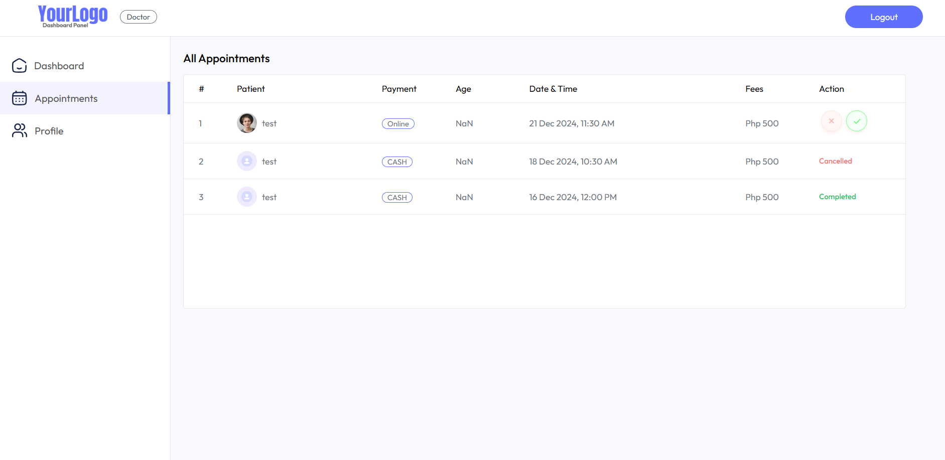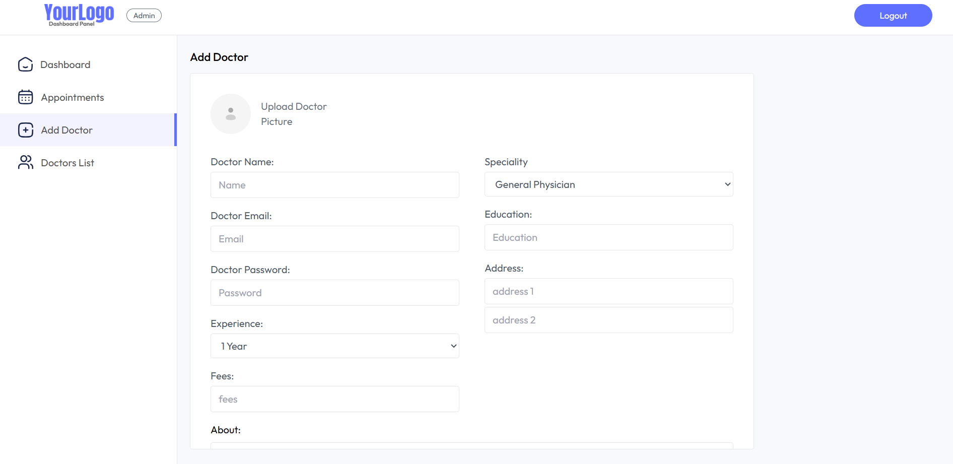 - Website Name: Admin Panel for Doctors Appointment system